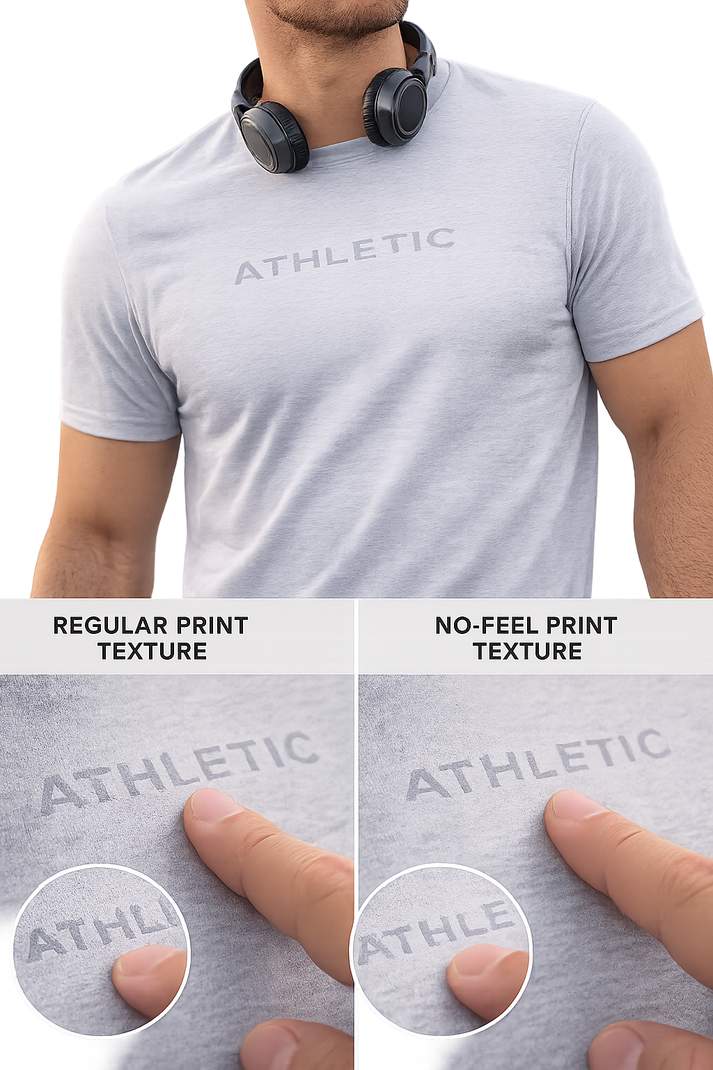 No Feel Printing uses an ultra-thin ink formula that bonds to the fabric without leaving any raised texture or noticeable hand-feel. The design becomes part of the garment itself breathable, flexible, and incredibly soft to the touch. This technique is perfect for athletic wear, summer apparel, and any garment where comfort is a priority. Despite the minimal thickness, color output remains vibrant and sharp. It's the go-to method for brands that want a premium, "printed-from-inside" look without sacrificing wearability.